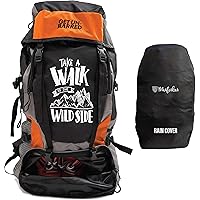 Mufubu Presents Get Unbarred 55 LTR Rucksack for Trekking, Hiking with Shoe Compartment and Waterproof Rain Cover (Black/Orange)