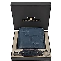 Urban Forest Blue Leather Wallet & Premium Keychain Combo Gift Set for Men