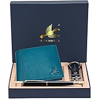 Hornbull Themes Aqua Blue Mens Leather Wallet, Keyring & Pen Combo Gift Set for Men | Wallet Men Leather Branded
