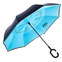 SKYTONE Umbrella Windproof, Reverse Umbrella, Umbrellas for Women with UV Protection, Upside Down Umbrella with C-Shaped Handle (Blue)